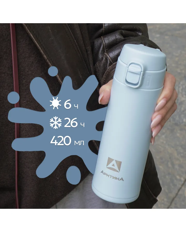 Термокружка Арктика 701-420 текстурный голубой с ситечком