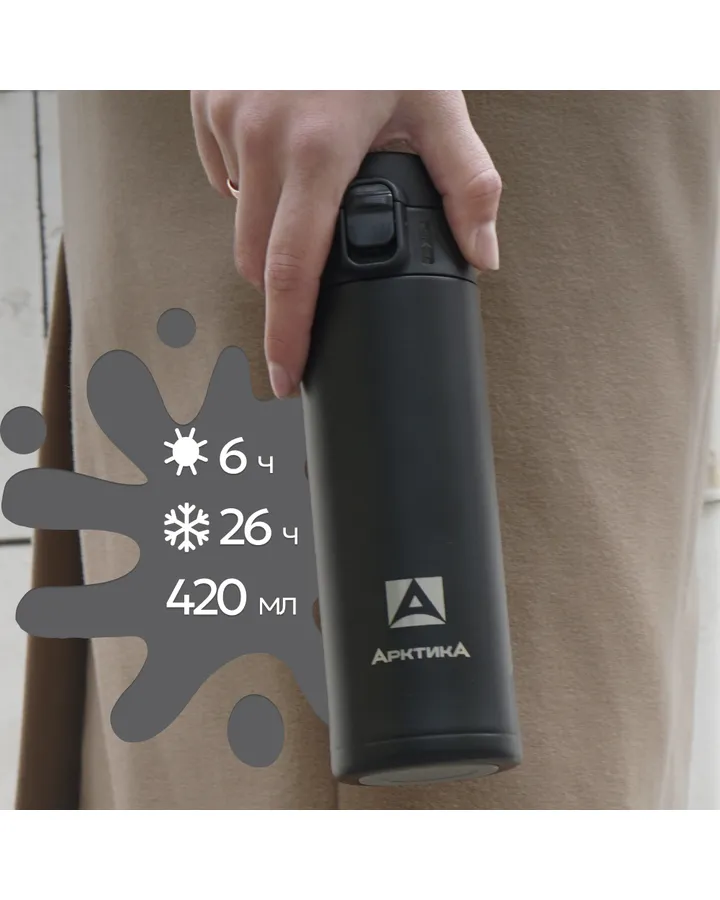 Термокружка Арктика 701-420 текстурный черный с ситечком