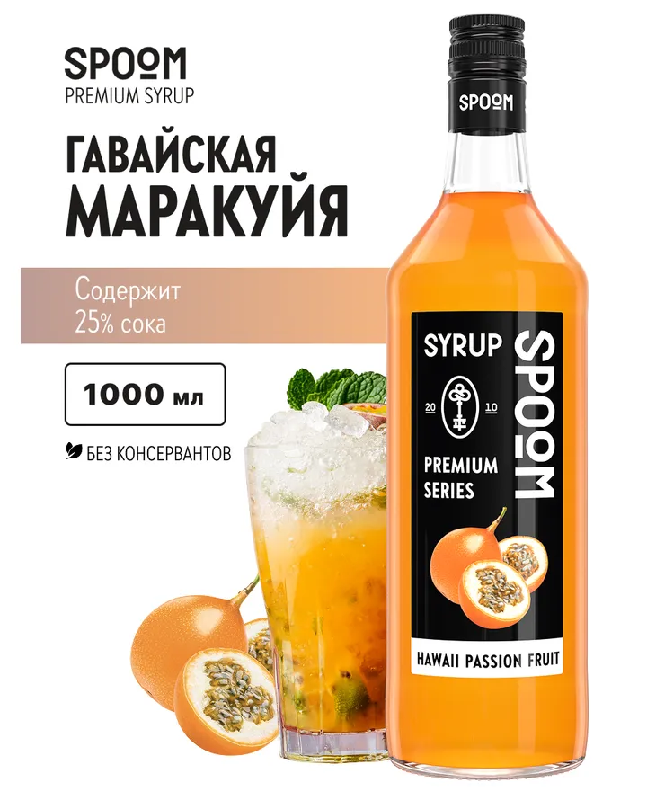 Сироп SPOOM Маракуйя гавайская 1л для коктейлей лимонадов и десертов