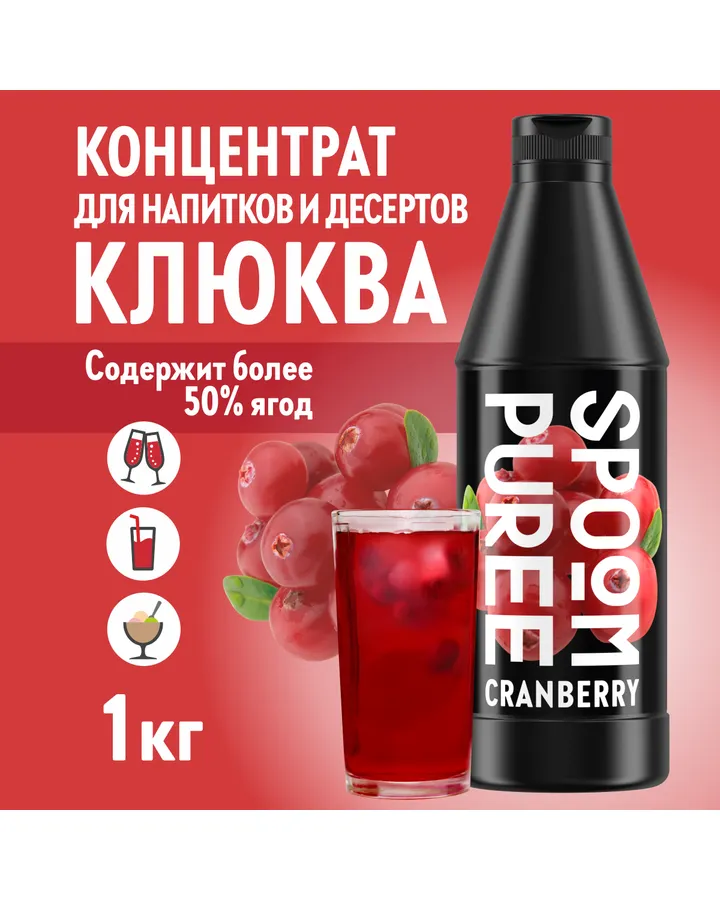 Натуральный концентрат SPOOM Puree Клюква 1кг основа для приготовления напитков и десертов