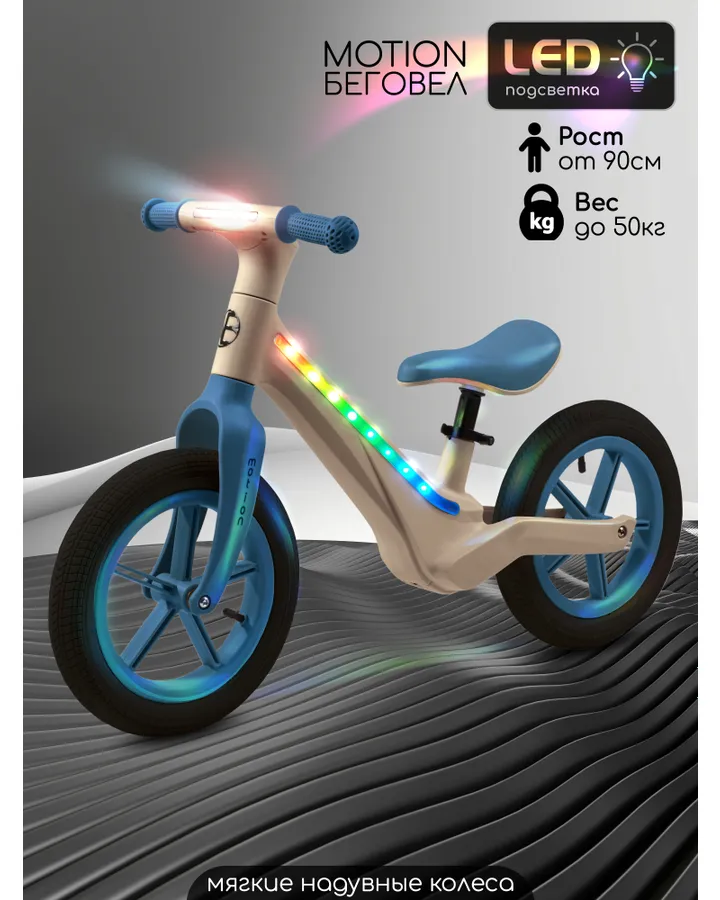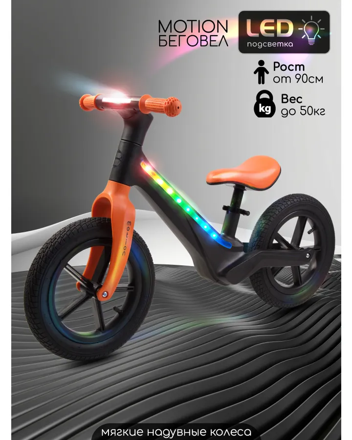 Очень легкий. Выглядит надежным. Красивый беговел. Ребенок 2,4 сразу понял как кататься. Сел и поехал. Сварные швы аккуратные, сиденье достаточно мягкое. В общем довольны и ребенок и родители.