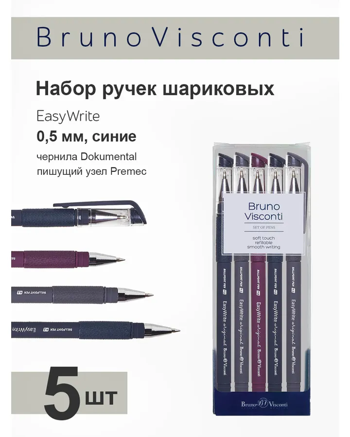 Ручка шариковая Bruno Visconti 5 шт.отличное качество чернил, приятно пользоваться - ручка хорошо лежит в руке