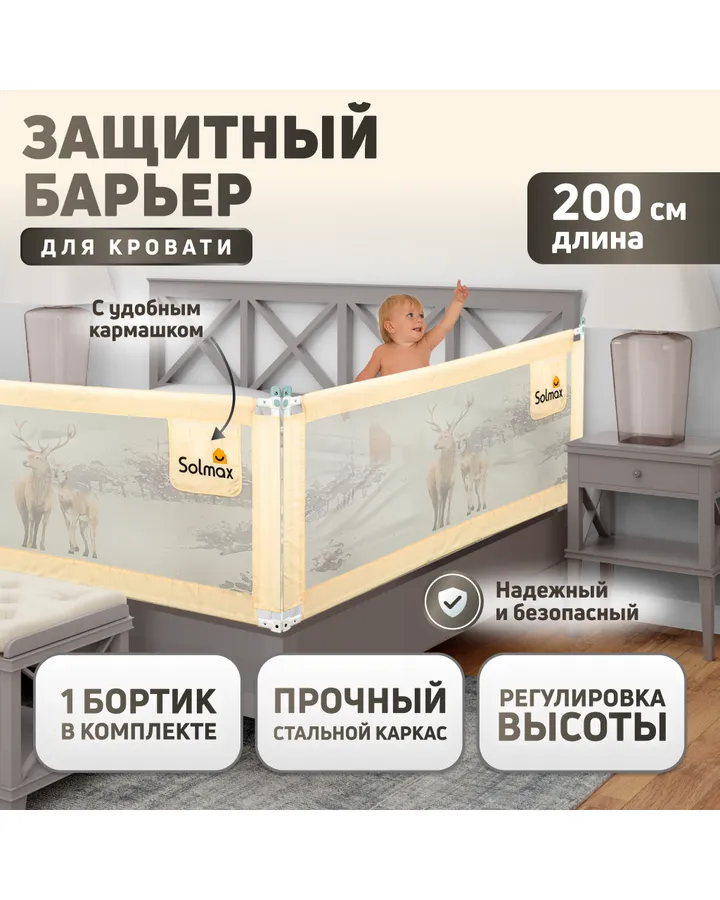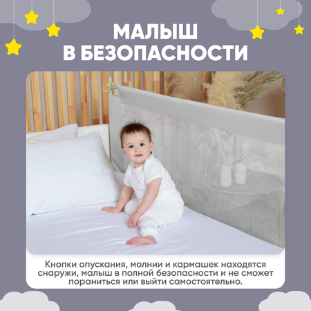 5Барьер-ограничитель Solmax Серый, розовый 200 смВзяли три борта по периметру кровати. Для тех,кто думает, брать или не брать – берите! Так намного спокойнее жить. Не переживаешь, что ребенок укатится, выпадет и т.п. (если у вас совместный сон). А когда я сильно болела и хотелось только лежать, мы просто вместе с малышом валялись в кровати с разными игрушками, как в манеже. Борты удобные. Чтобы спокойно и тихо поднять/опустить, надо сразу двумя руками это делать, широко раскрыть руки и потихоньку тянуть вниз/вверх, немного иногда тихонько покачивая из стороны в сторону. Защёлку зажать пальцами, застегнуть и только потом отпустить. Тогда не будет громко щёлкать. Я ребенка укладываю на сон, потом тихо поднимаю борт. У нас кровать с подъемным механизмом. Прикрутили хомутами к каркасу, чтобы крепче держались борты. Борт, который в ногах вообще не опускаем. На него удобно вешать простынку детскую, одёжку какую-нибудь, в кармашек можно сменный подгуз на ночь положить. Борт, который с моей с малышом стороны, я ночью не отпускаю, если мне надо встать) просто передезаю через него. Ну.. акробатические этюды приходится совершать))) В общем, вот так. Редко отзывы пишу, но всё-таки иногда надо. Я ведь сама ориентируюсь на чужие отзывы) так что решила всё же оставить. Я очень довольна, что мы купили эти барьеры.