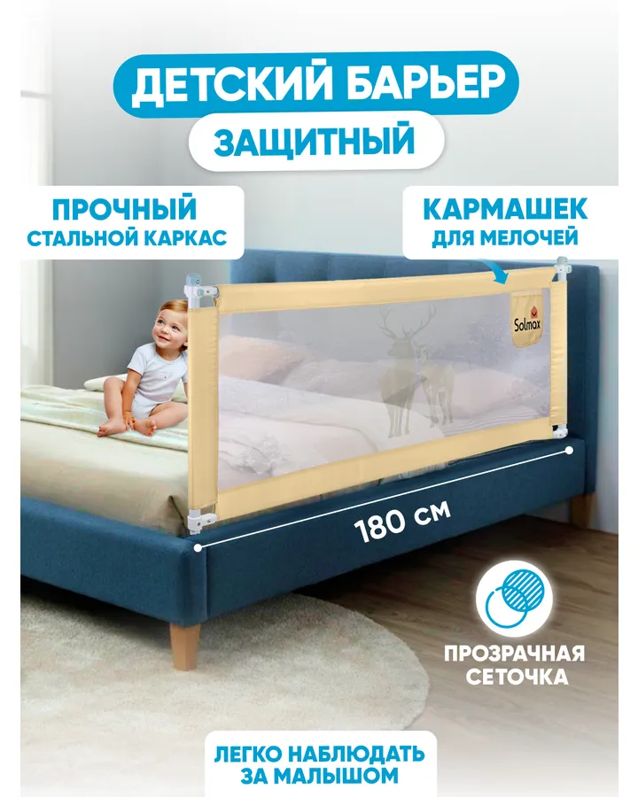 5Барьер-ограничитель Solmax Серый 160 смОставлю отзыв по-любому кому то пригодиться. Заказывал данный бортик ребенку для дивана книжка. Долго думал, потому что везде пишут что только для кроватей. Но немного смекалки сделали свое дело и бортик стоит идеально, специально брали короче что бы ребенок когда проснулся сам слазил. Верх дивана хорошо придавливает крепления бортика но для большей уверенности я на крепление снизу вплотную прикрутил бруски что бы ребенок не выдавил бортик из дивана. Так что берите смело и немного смекалки.