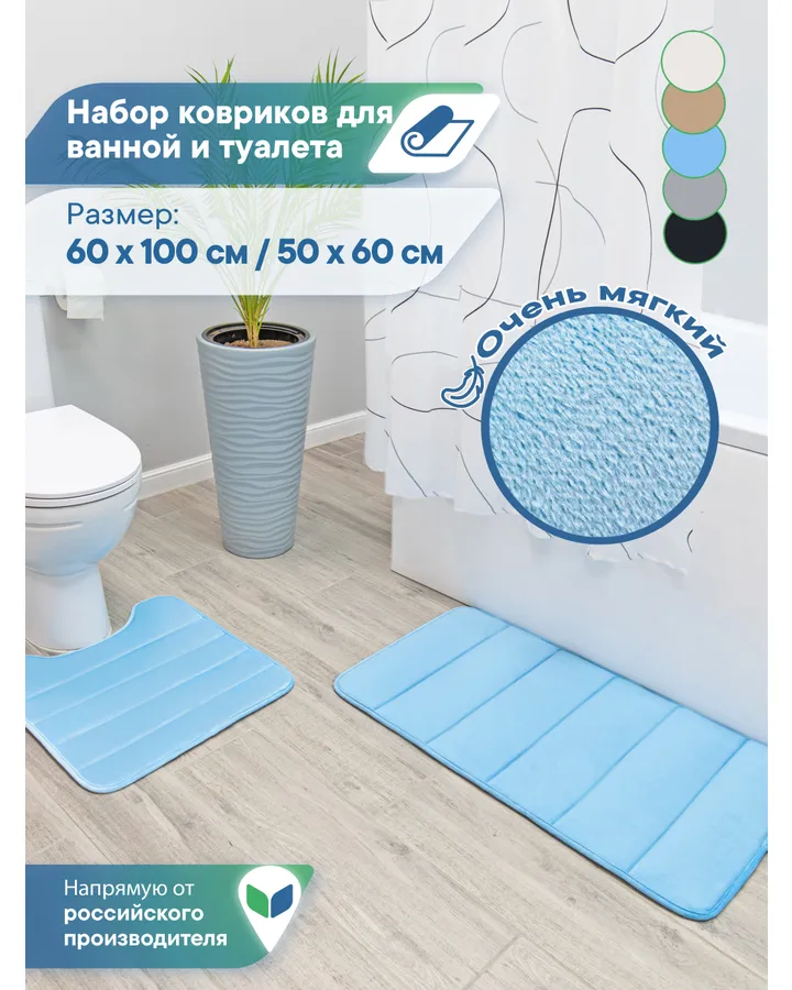 Коврик для ванной VILINA голубой 0.38 x 0.68 см 1 шт.