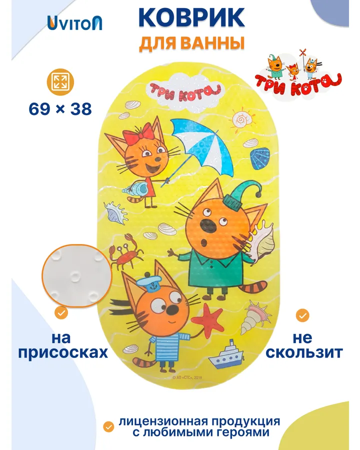 Коврик для ванной Три кота Каникулы 38 x 69 см