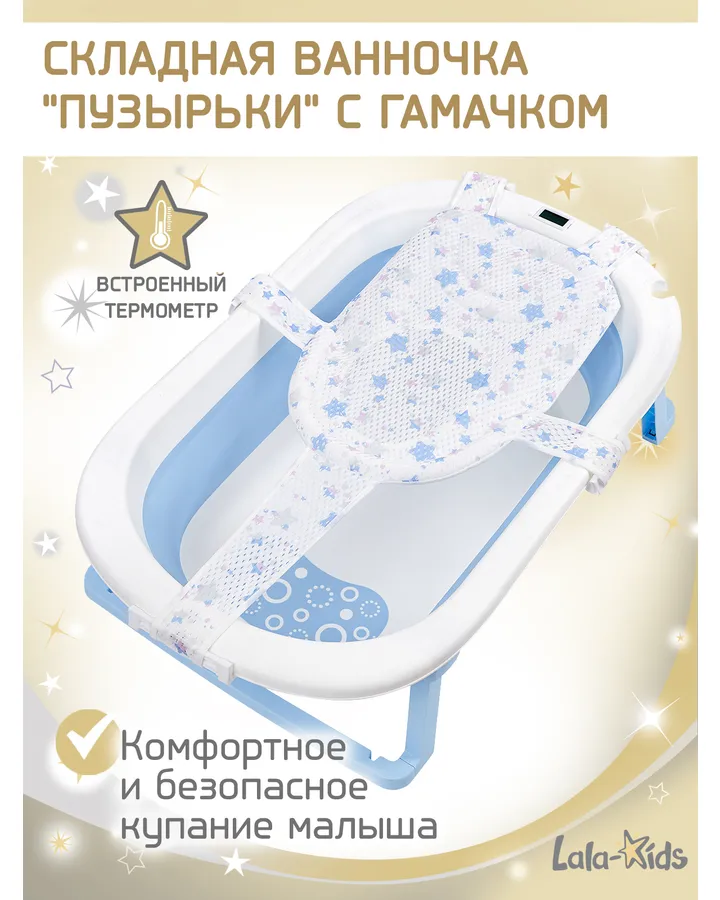 Ванночка LaLa-Kids с матрасиком, складная голубой