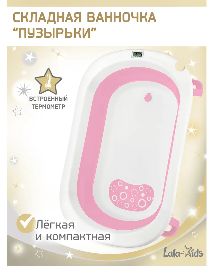 Ванночка LaLa-Kids с матрасиком, складная розовый
