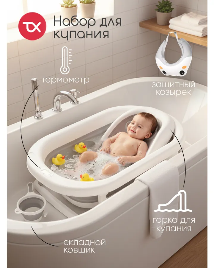 Хорошая ванночка для младенца, удобная в использовании, в наборе все есть для малыша, рекомендую