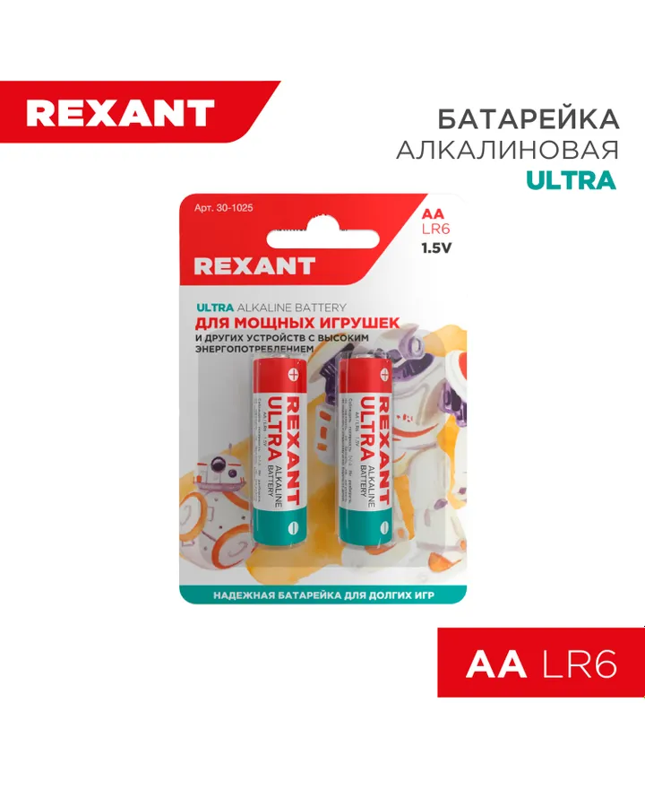 Батарейка REXANT Ультра алкалиновая AA LR6 1.5В 2 штуки