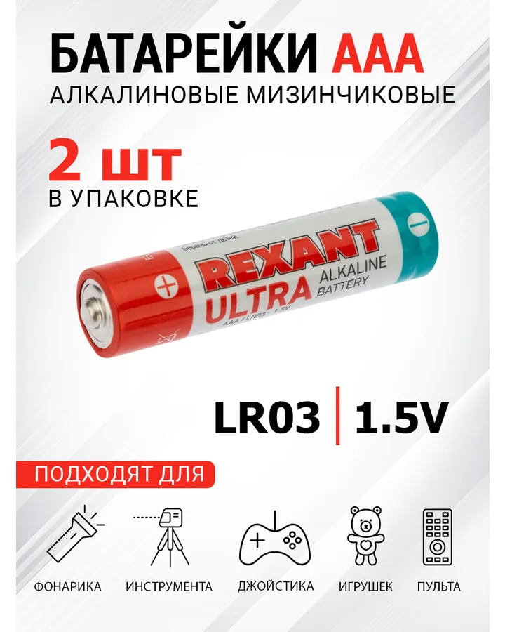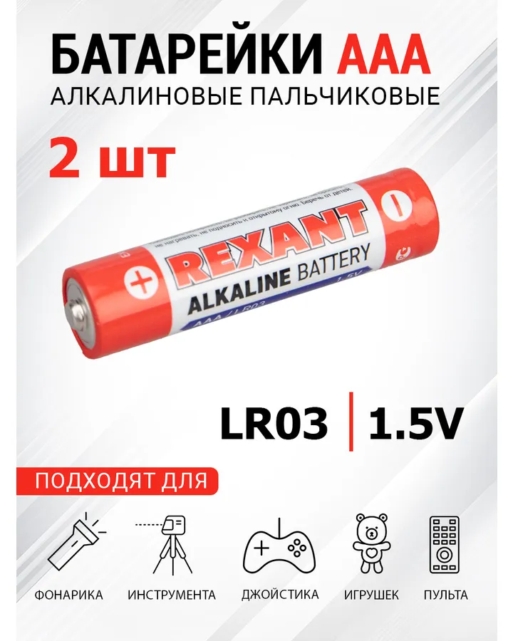 5Алкалиновые батарейки REXANT мизинчиковые AAA/LR03 24 штХорошие, набор был открыт. Одной батарейки не было.
