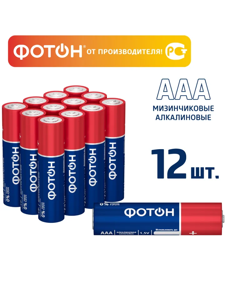 Батарейки мизинчиковые Фотoн ааа LR03 набор 12 шт