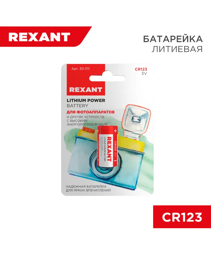 Литиевая батарейка REXANT тип CR123