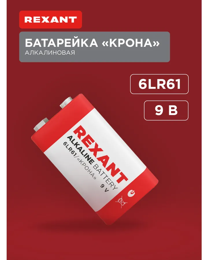 Алкалиновая батарейка REXANT тип Крона 6LR61