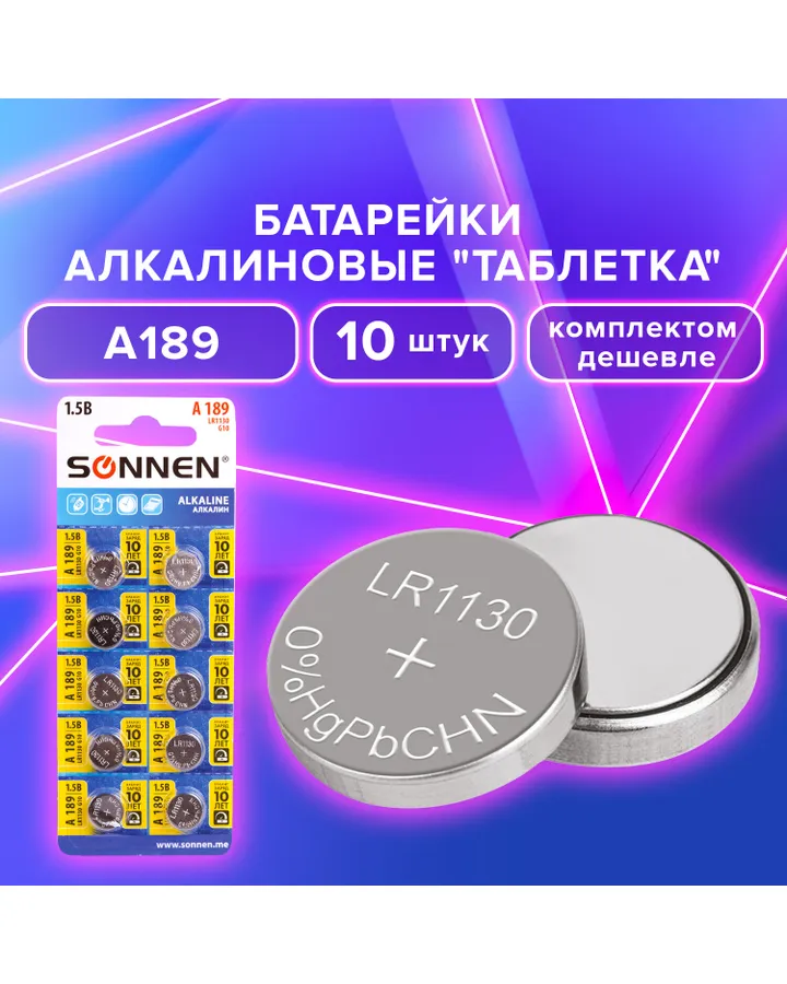 5Батарейки Sonnen круглые таблетки алкалиновые 10 штук 189AОтличные батарейки! Долго держат заряд и не подводят. Рекомендую!