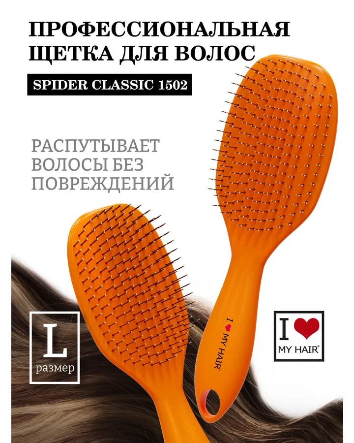 Массажная расческа, расческа, щетка I LOVE MY HAIR оранжевый искусственная щетина
