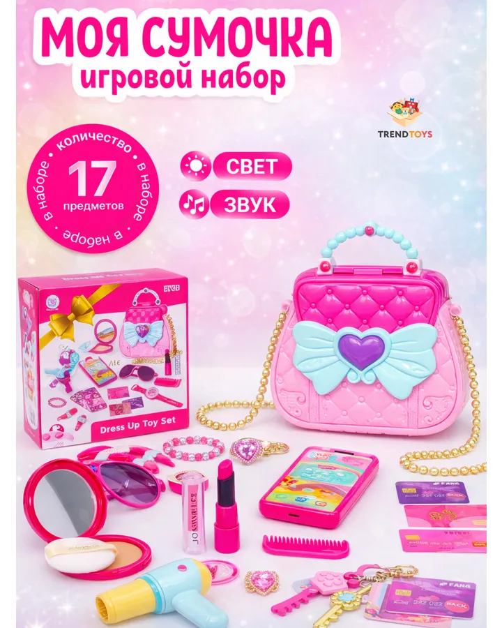 Игрушка TrendToys Сумочка с аксессуарамиКачество пластика отличное. Помада - в самое сердечко. Малышка (1 год) играет с удовольствием. В машине всегда надевает очки)
