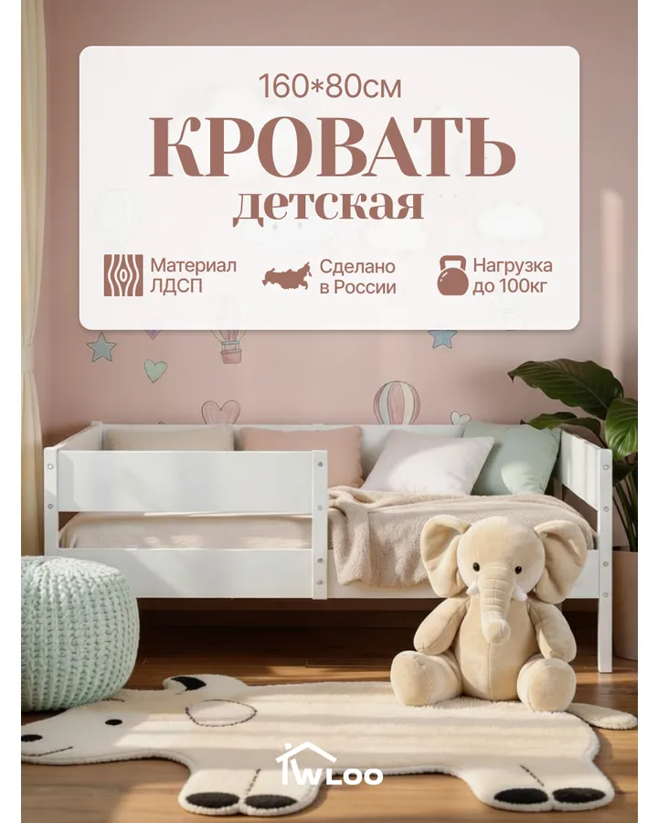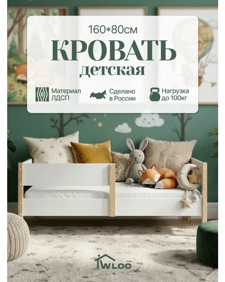 Кровать подростковая Wloo 160*80 (белый, береза)