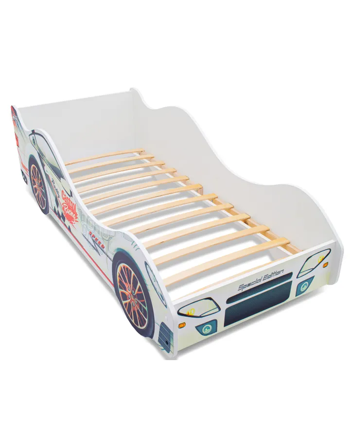 - Основание из прочной ЛДСП-плиты толщиной 16 мм выдерживает нагрузку до 200 кг, поэтому дети могут скакать и веселиться на детской кровати-машине без риска ее сломать.