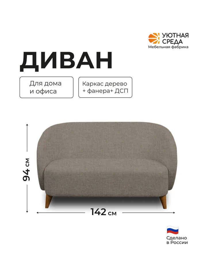 Диван Уютная среда темно-серая рогожка серый