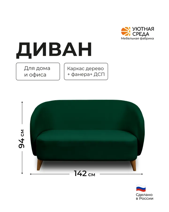 Диван Уютная среда зеленый велюр зеленый