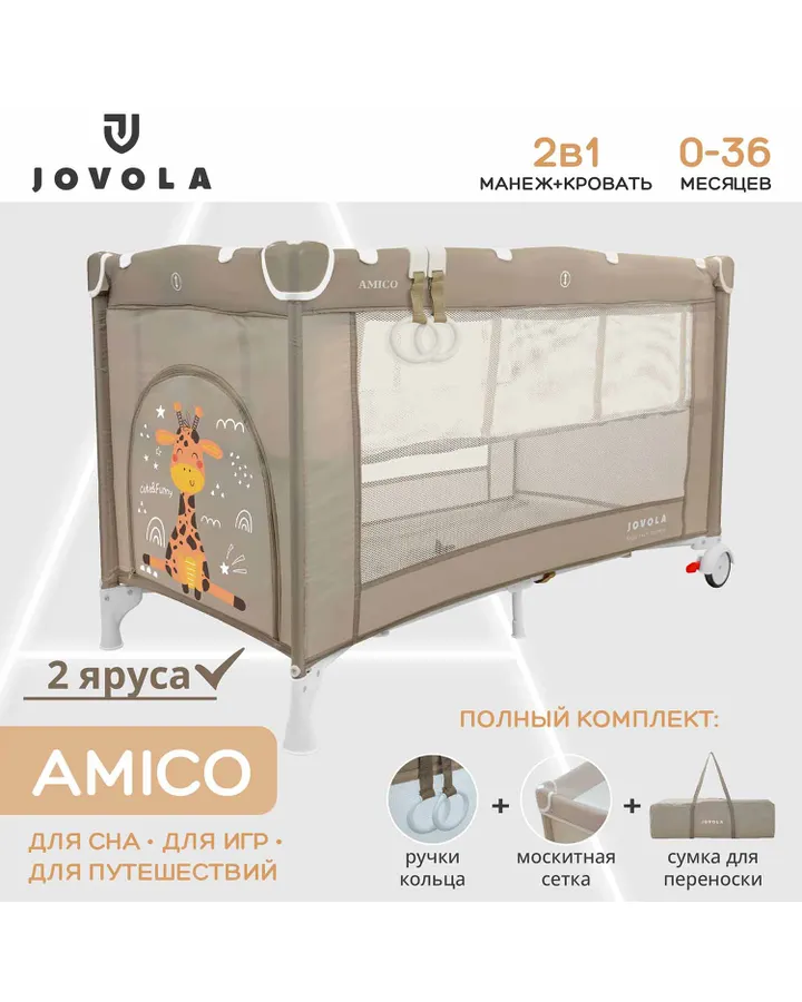 Манеж кровать JOVOLA Amico 2 уровня бежевый бежевый