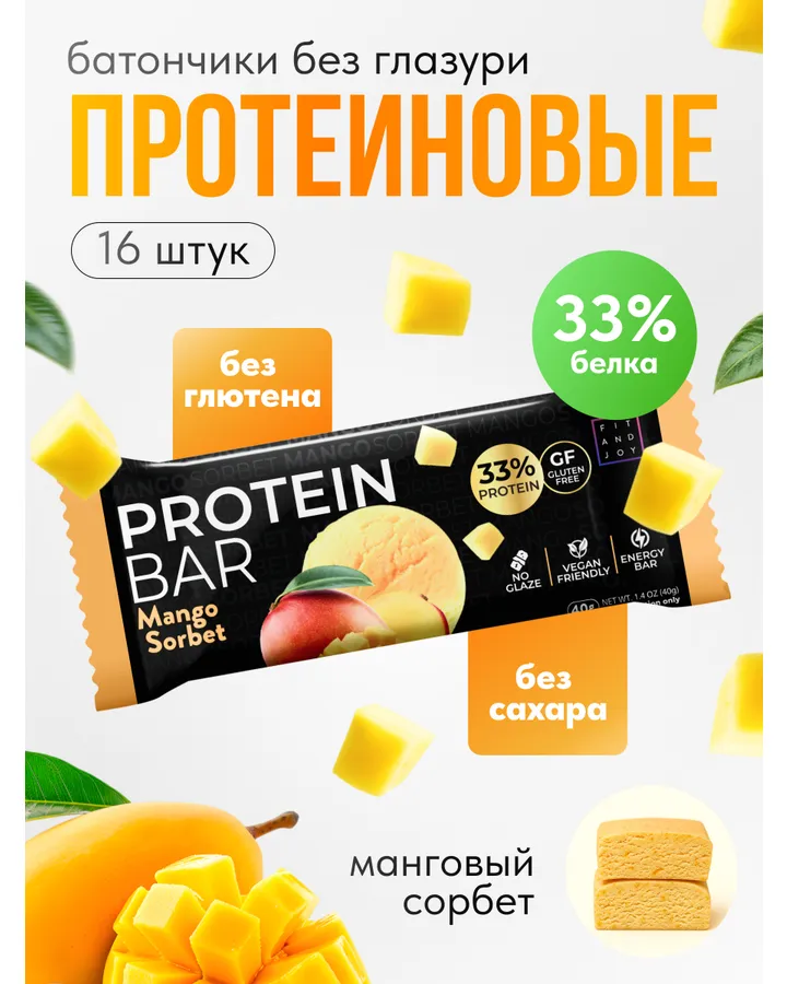 Протеиновые батончики ассорти FIT AND JOY Без глазури 16шт х 40 грПитательные батончики , вкусные.