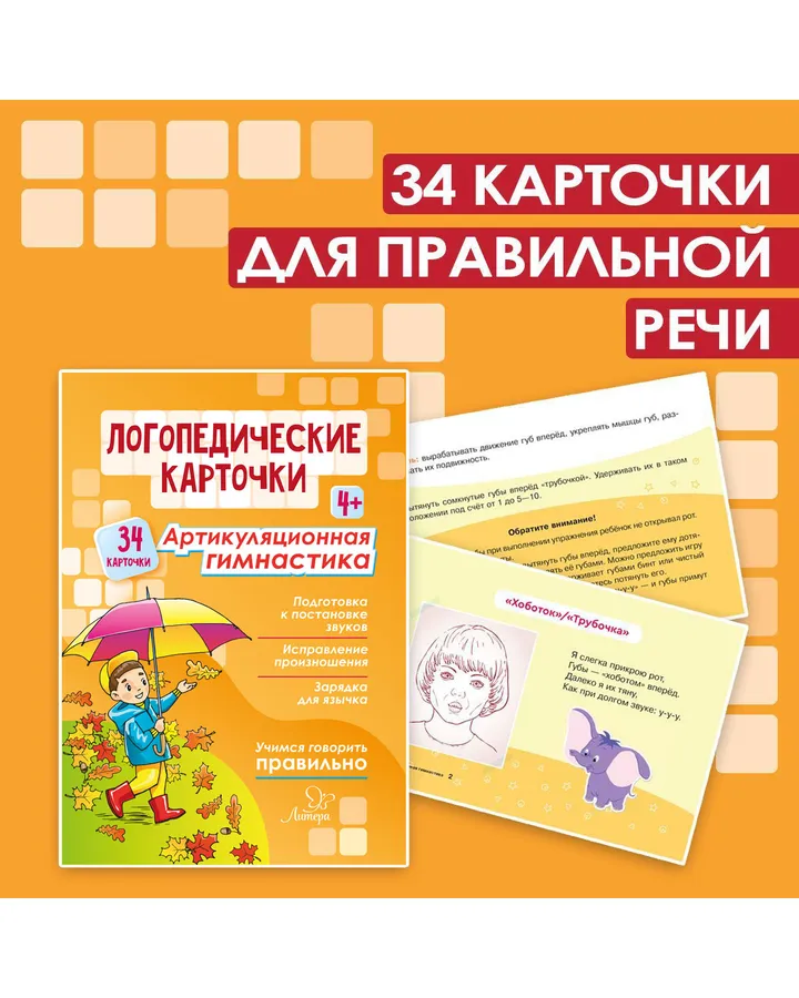 Логопедические карточки ИД Литера Артикуляционная гимнастика. 4+