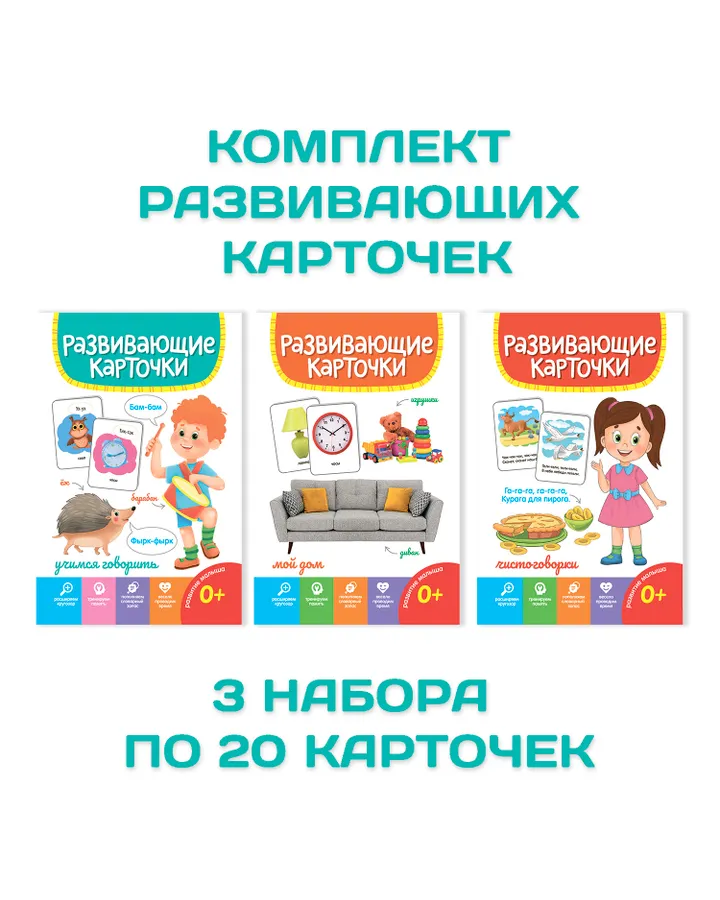 5Набор карточек Проф-Пресс развивающие. 3 упаковки по 19 шт 12х18 см. Мой дом+учимся говорить+чистоговорки👍🏻