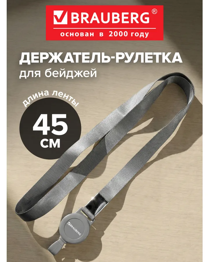 Держатель для бейджа Brauberg серый