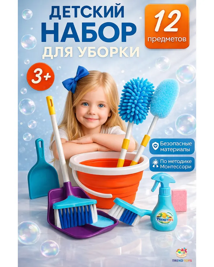 Классный набор детский для уборки. Дочке нравится ходить и подметать везде)) Приучаем к уборке с детсва. Упаковано все хорошо, качество хорошее