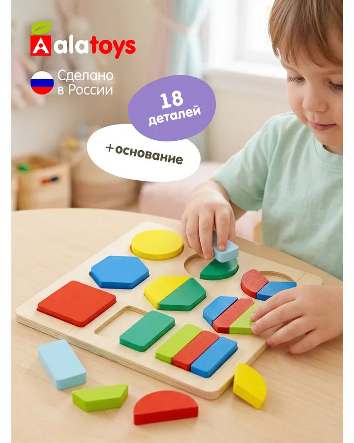 Настольная игра Alatoys ГЕОМЕТРИЧЕСКИЕ ДРОБИ 18деталей