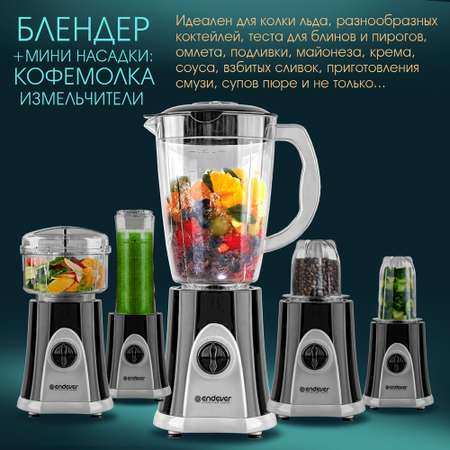 5Блендер настольный ENDEVER Sigma-201Отличный блендер, хорош для приготовления смузи и пюре, кофемолка тоже хорошо измельчает.
