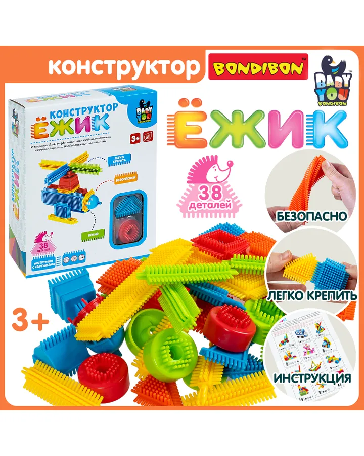 5Конструктор Bondibon игольчатый для малыша Вертолет мягкий 38 дет.Ребёнок конструирует с большим интересом. Рекомендую.