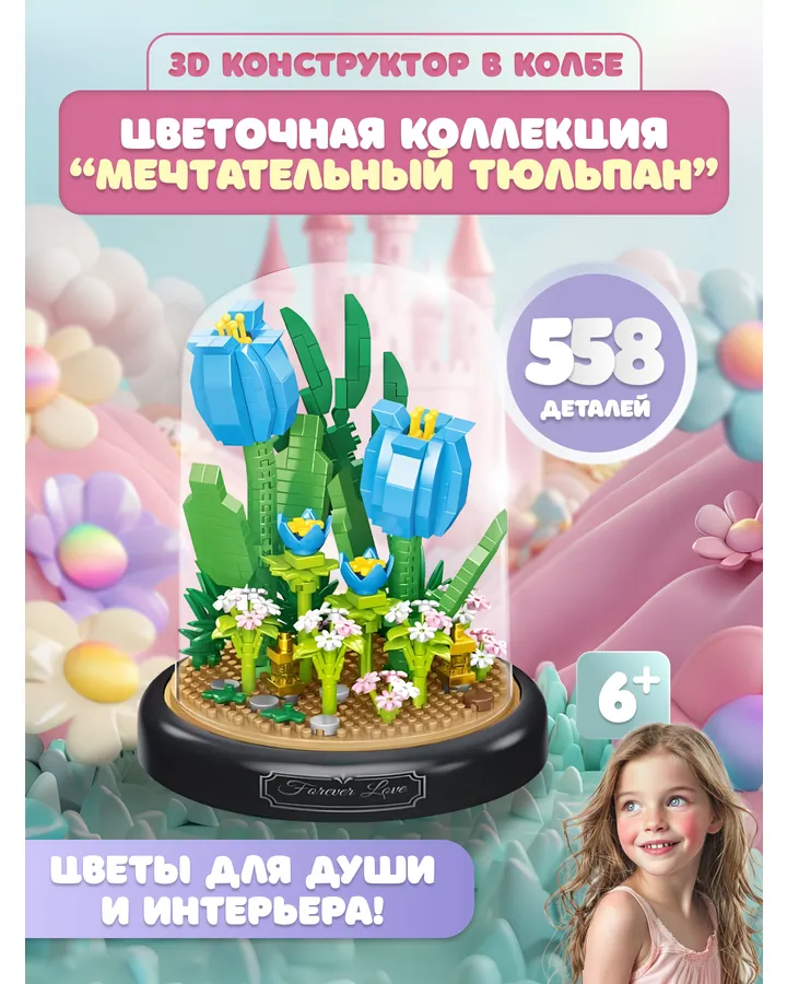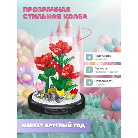 Конструктор ГлавИгрушка Неувядающий цветок из мини-блоков 558 дет.