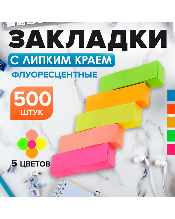 Блок-закладка Calligrata с липким краем 100л х 5 цветов