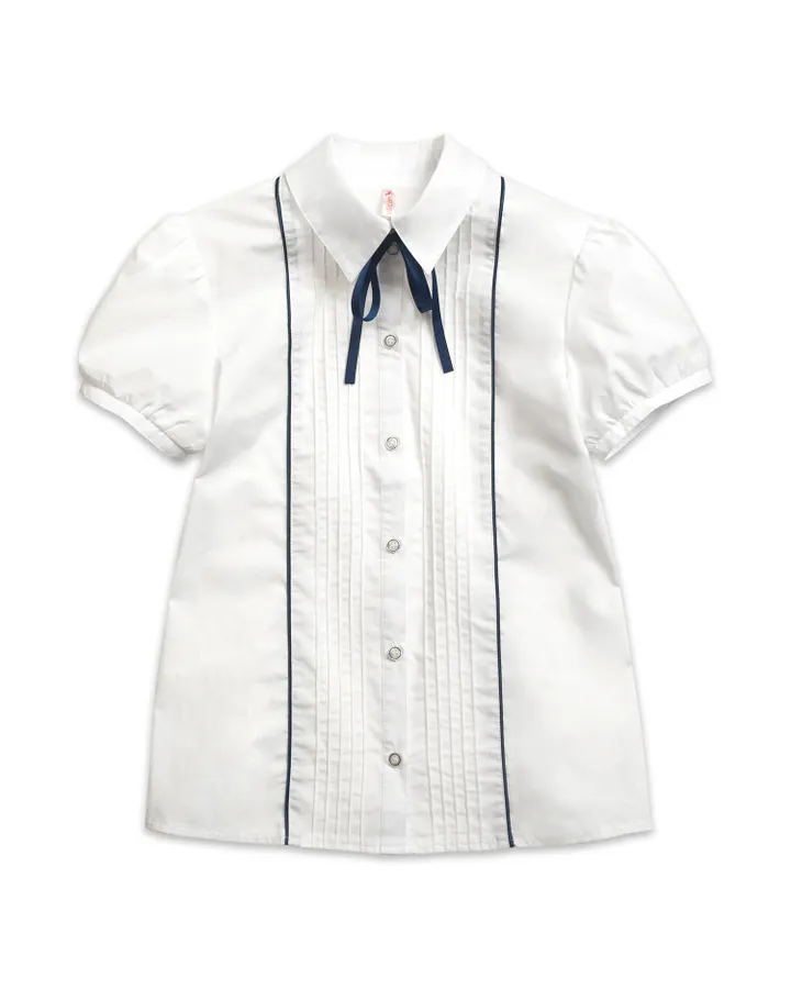 Блузка PelicanХорошая футболка, взяли для школы, узенькая, на худенькой девочке не висит и села хорошо. Выглядит качественно