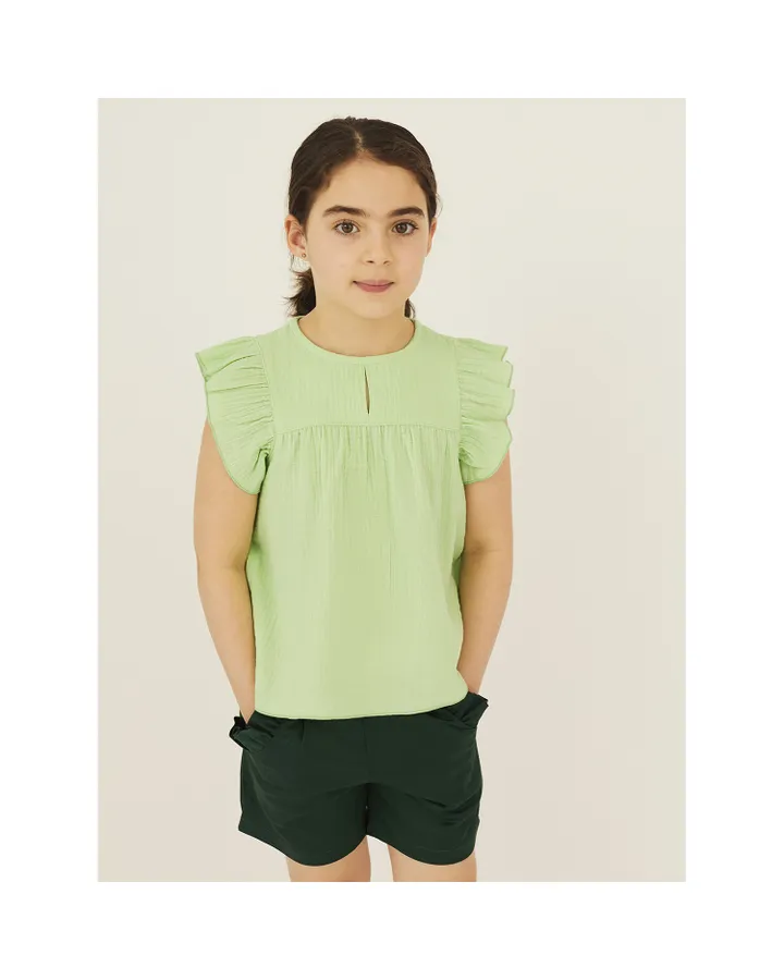 Блузки очень классные. Сначала взяла на пробу старшей дочери, затем для младшей заказала меньшего размера. Великолепно смотрятся - хоть на выход, хоть в школу. Ткань эластичная, мягкая и приятная к телу. Цвет не маркий и очень освежает:)). После стирки не нужно гладить!