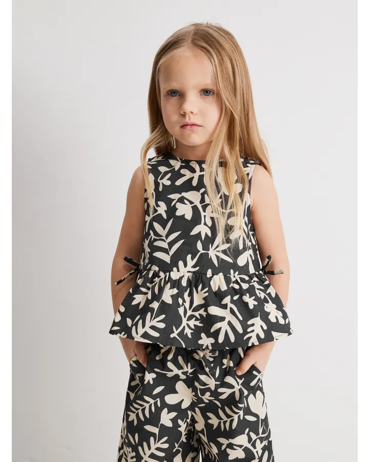 Блузка AcoolaСимпатичная майка, у нас комплект с шортами. На лето хорошо. Синтетическая ткань, после стирки не сереет, но через пару стирок все в катышках. Второй раз бы не купила