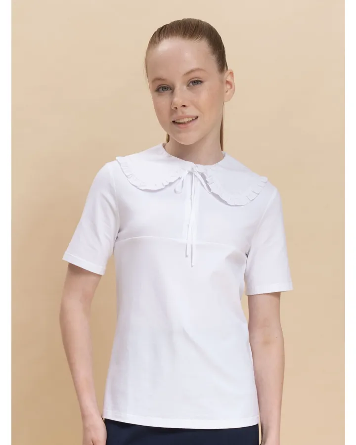 Блузка PelicanХорошая футболка, взяли для школы, узенькая, на худенькой девочке не висит и села хорошо. Выглядит качественно