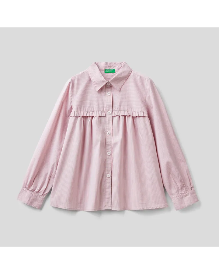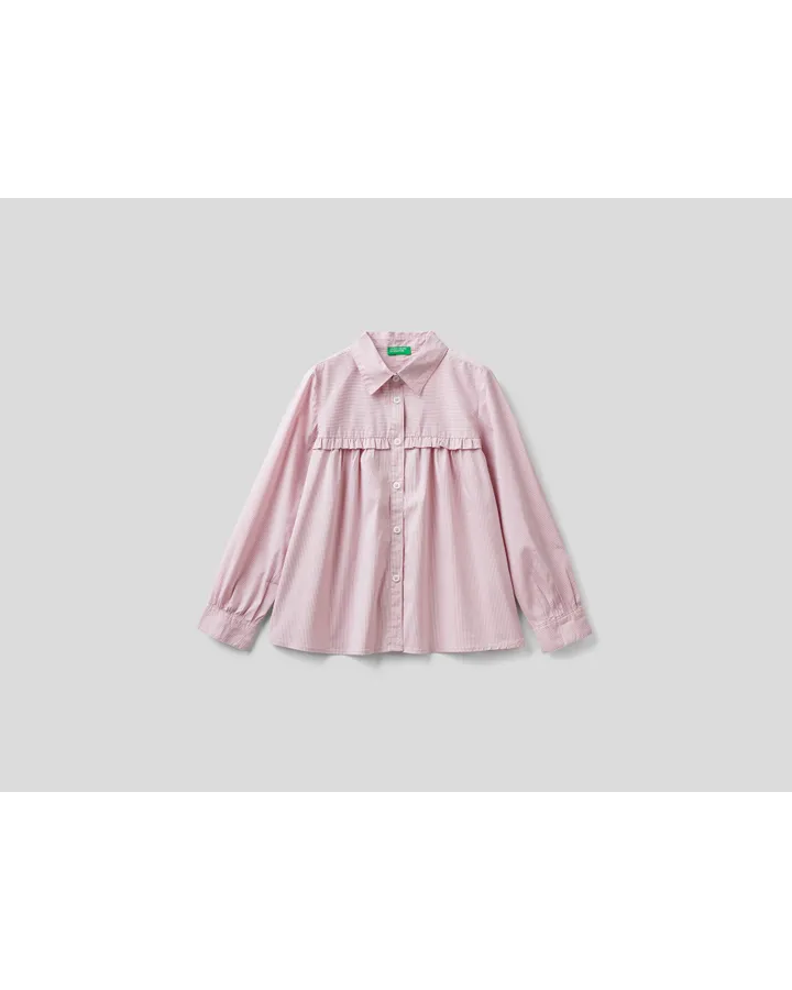 Блузка United Colors of BenettonКрасивая, хорошо сшита, смотрится и с сарафаном, и с брюками. Ткань не мягкая как у блузок, а как у рубашек, чуть эластичная. Совсем не большемерит, просто выглядит как оверсайз из-за расширенного низа