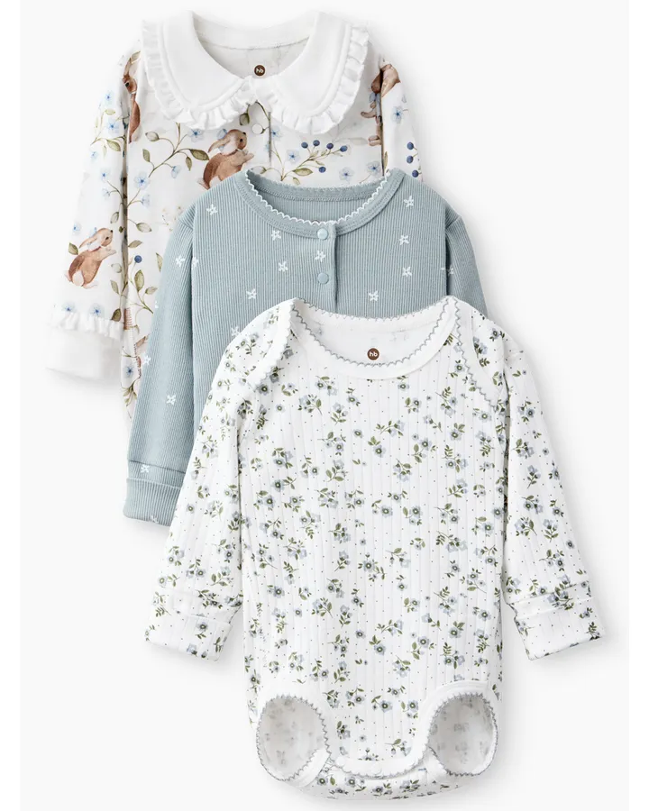 Как и с ползунками: много торчащих ниток, но не расползаются, просто видимо невнимательность швей. Красивый комплект! Особенно порадовал двойной ряд кнопок, можно немного регулировать размер.