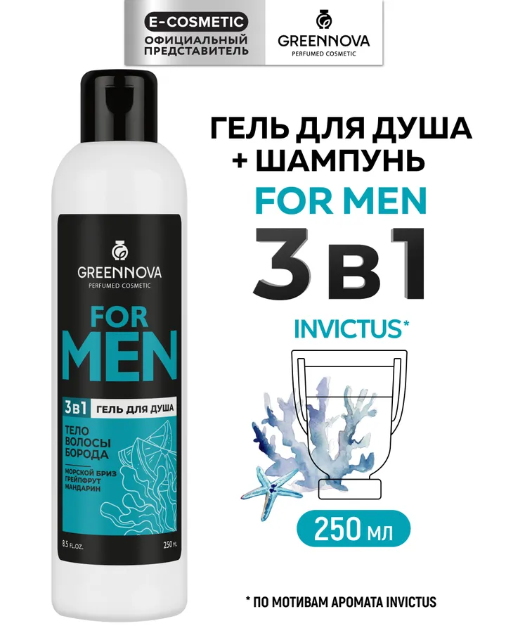 Гель GREENNOVA 3 в 1 морской бриз 250 мл