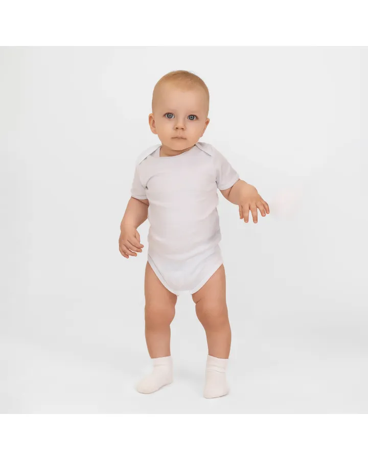 Бодик с высокой горловиной, что малышу не очень понравилось. Ткань мягкая
