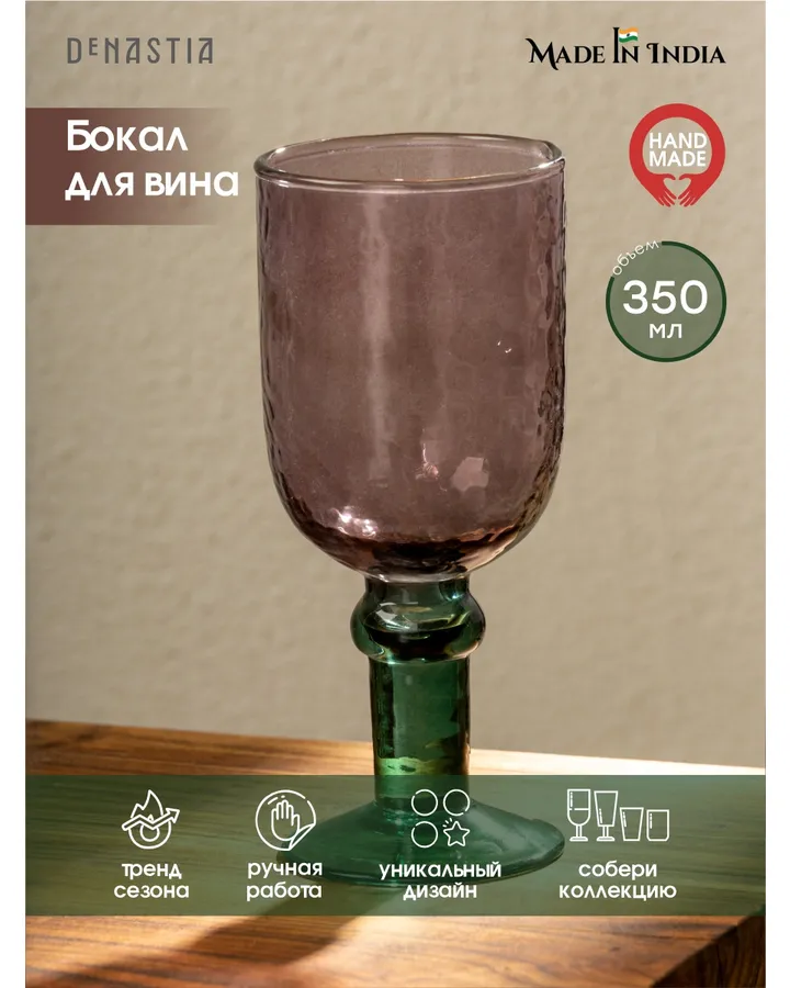Бокал для напитков DeNASTIA 8.5x8.5x16.5 см 275мл фиолетовый/зеленый G000245