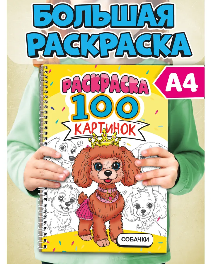 Раскраска Проф-Пресс 100 картинок. Собачки. на гребне А4. 100 стр.