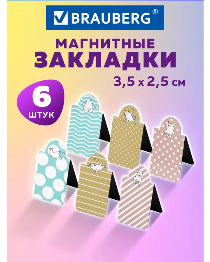Закладки стикеры Brauberg для книг самоклеящиеся набор 200 штук 6 цветов