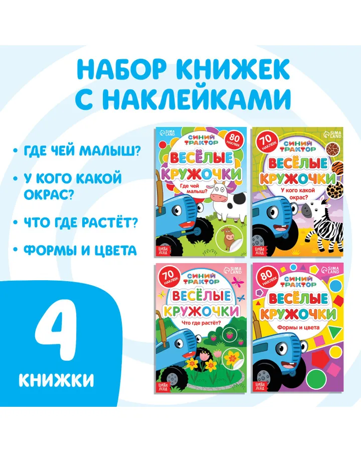 Набор книг Синий трактор с наклейками «Весёлые кружочки» 4 шт. по 16 стр. А5