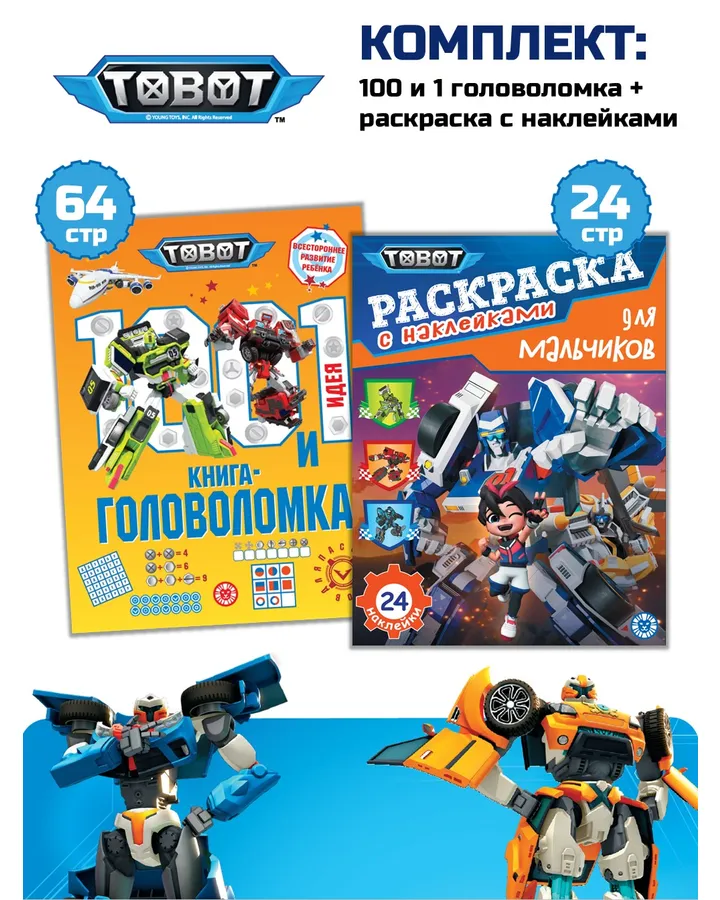 Комплект ТОБОТ 100 и 1 головоломка + Раскраска с наклейками