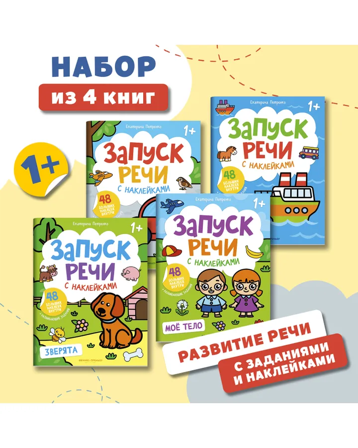 Набор из 4 книг Феникс Премьер Запуск речи с наклейками 1+